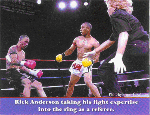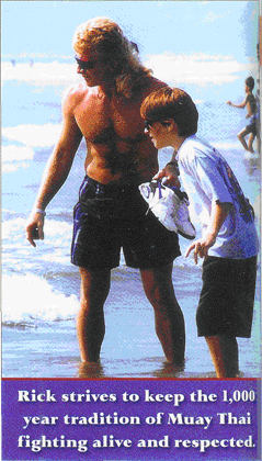the past 35 years. "I started off as a teenage wrestler in 1971.1 moved onto boxing before studying Tae Kwon Do. From there 1 progressed to Hapki-do and into the esoteric stuff like Ching Mo, Judo, Hung Ga, Kung Fu, and Bruce Lee's original discipline, Wing Chung. I began Muay Thai fighting in 1988 and that was love at first sight." When Rick relocated to Southern California, he fulfilled a lot of dreams he had as a youngster. "As a young martial artist in Minnesota I dreamed, as young men will do, that someday, |